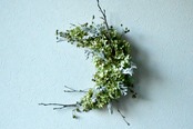 グリーンアナベルと野バラの実を使った三日月型のリースです。