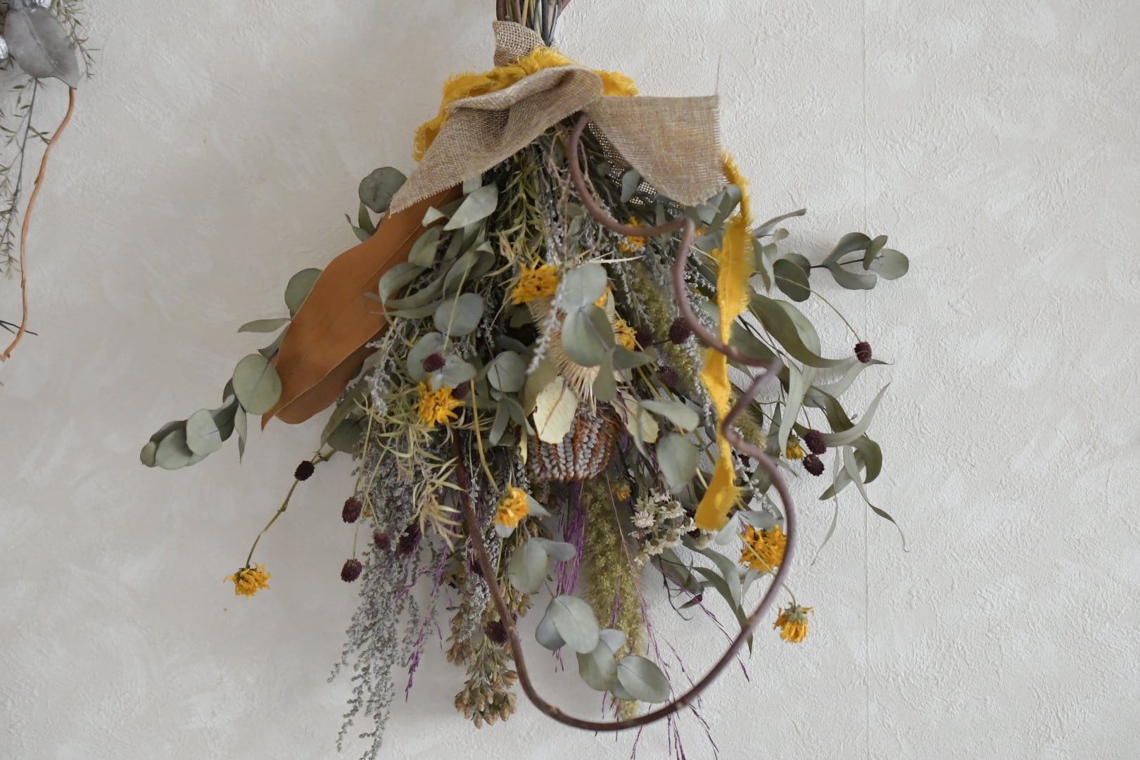 ◎自然素材を使用して制作していますので、経年褪色します。高温多湿、直射日光を避けて飾っていただくと少し長くお楽しみいただけますが、変わっていく色もお楽しみいただけたら嬉しいです。