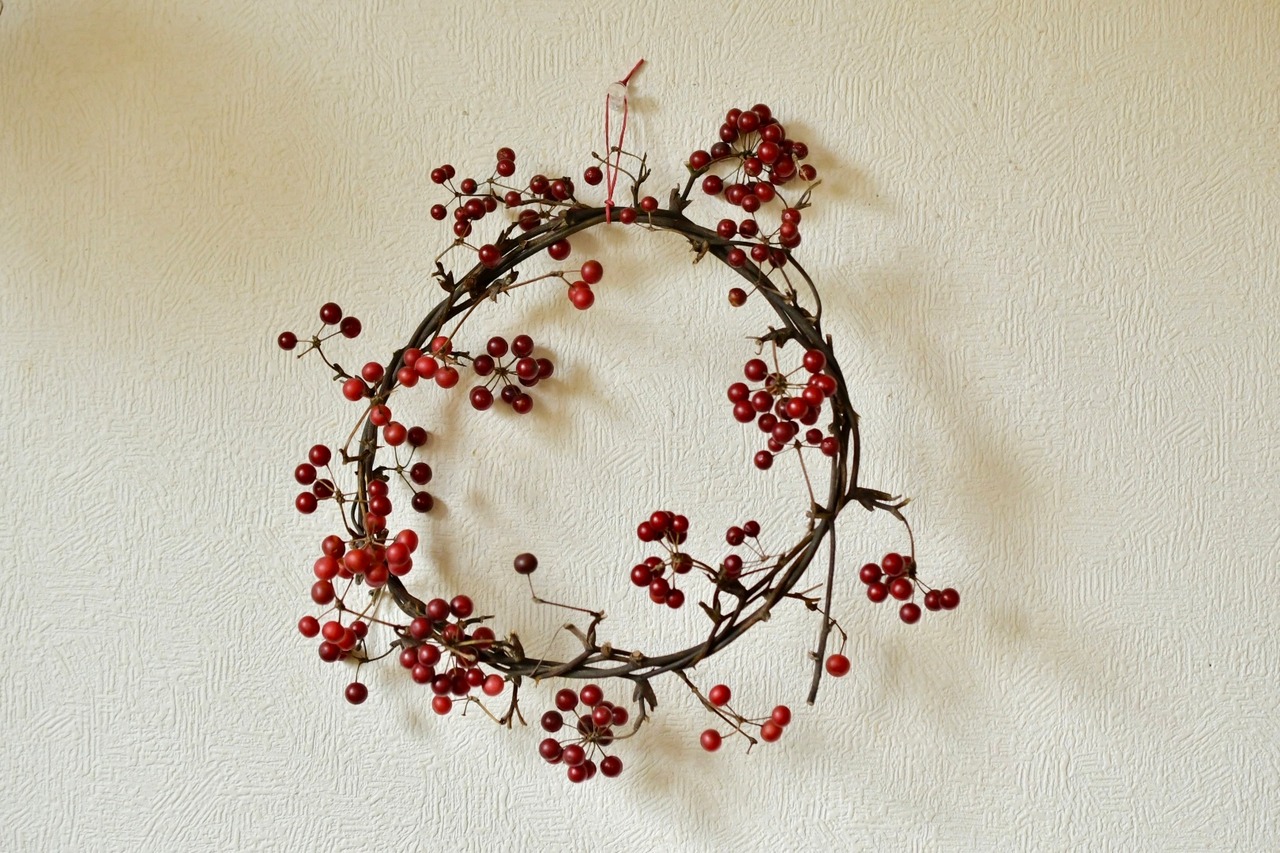 サンキライを自然な形に丸めた、シンプルなリースです。色持ちも良く、長くお楽しみいただけます。